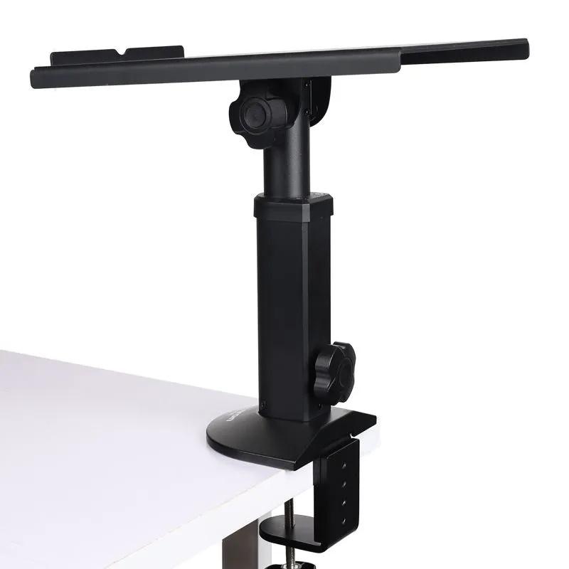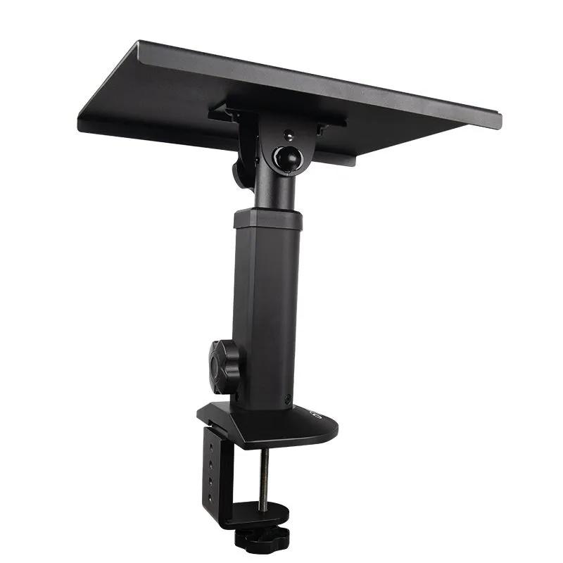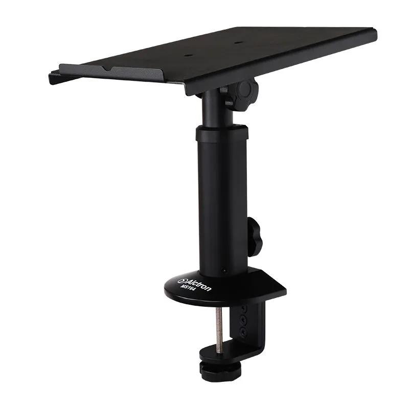 MS164 — это элегантная и стильная подставка для студийных мониторов с креплением к столешнице. Верхняя платформа имеет функцию регулировки угла, диапазон регулировки угла наклона от -10 до +10 градусов. Покрытие платформы изготовлено из этиленвинилацетата, которая защищает мониторы и снижает вибрацию. Основная часть оснащена функцией регулировки высоты. Сверхпрочный зажим подходят к стандартным столешницам толщиной до 60 мм и обеспечивает надежную фиксацию подставки. Изготовлена из прочного анодированного алюминия, все компоненты имеют прочную конструкцию премиум-класса.