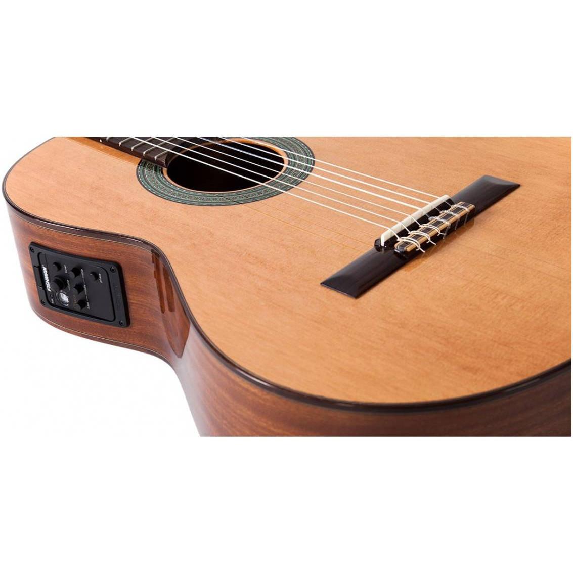 ALTAMIRA N200CE — отличная электроакустическая гитара для студентов музыкальных училищ, и для продолжающих изучать классическую гитару на продвинутом уровне. Верхняя дека из цельного красного кедра, нижняя дека и обечайка из красного дерева, гриф из африканского красного дерева, накладка на гриф и бридж из палисандра. Глянцевая отделка. Инструмент выполнен вручную, у него хорошая глубина баса, громкий и теплый, полный тон с довольно приличной чистотой.