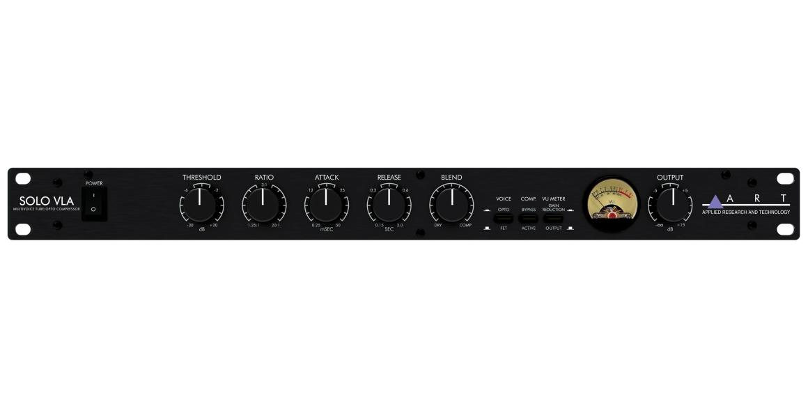 Solo VLA — это рэковый компрессор 1 U с переключаемыми оптическими и полевыми транзисторами для плавной или энергичной динамической обработки. В оптическом режиме используется лампа 12AT7 в сигнальном тракте для дополнительной теплоты. Помимо изменяемых порога, соотношения, атаки и восстановления, он также оснащен регулятором смешивания для параллельной компрессии. Это позволяет добавить полноту и сустейн к сжатому сигналу, сохраняя при этом полный динамический диапазон исходного исполнения.