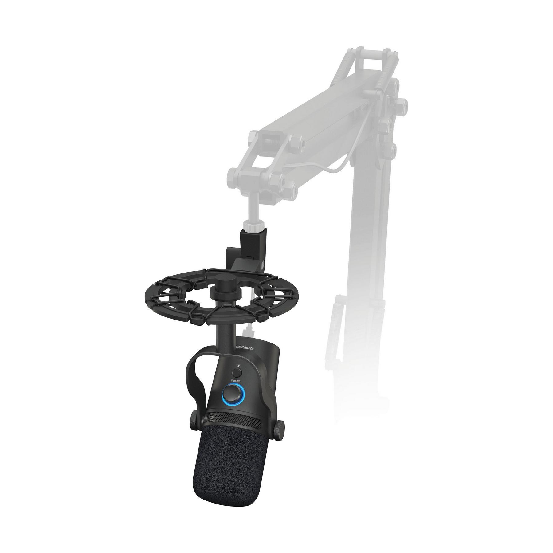 Новинка с кардиоидной диаграммой направленности может похвастать портом USB, позволяющим записывать в разрешении до 24 бит/96 кГц и разъёмом XLR, обеспечивающим возможность использования девайса в роли классического аналогового микрофона. Кроме этого, в модели используется 30-мм диафрагма, эффективно транслирующая речь или вокал, а также звук кабинетов усилителей или ударных инструментов (благодаря максимальному входному уровню звукового давления до 130 дБ).