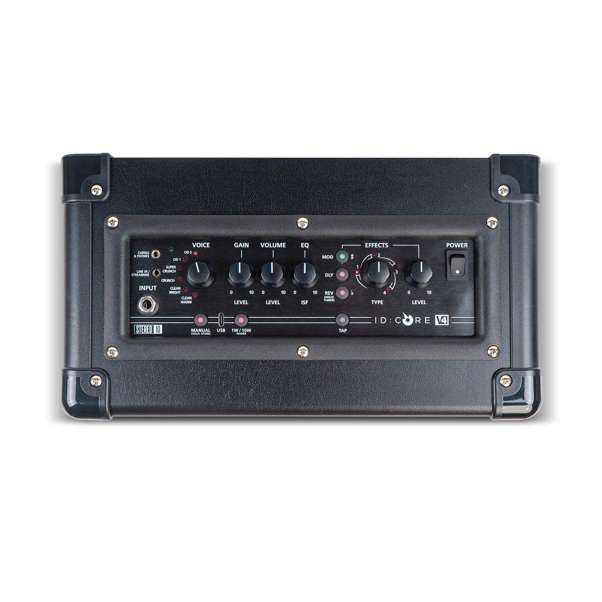 ID: CORE V4 10 обладает потрясающим звучанием, иммерсивным стереозвуком Super Wide, эмулятором габинета CabRig™ Lite, запатентованным Blackstar регулятором тембра ISF и возможностью подключения по USB-C, а также - впервые в серии - фукнцией понижения мощности до 1 Вт, что позволяет играть на более низкой громкости без ущерба для качества звука.