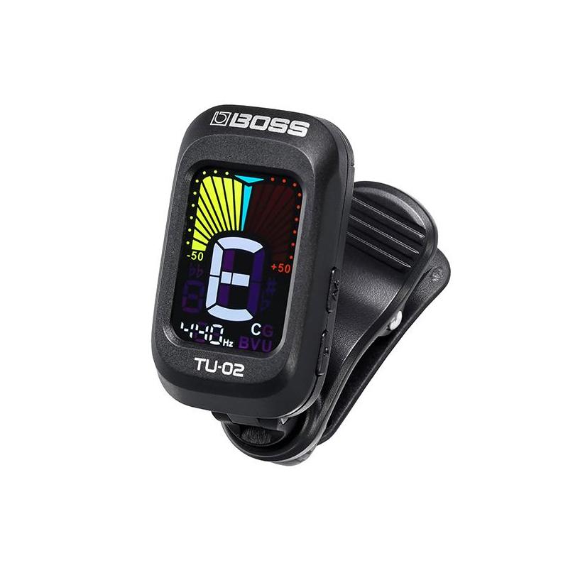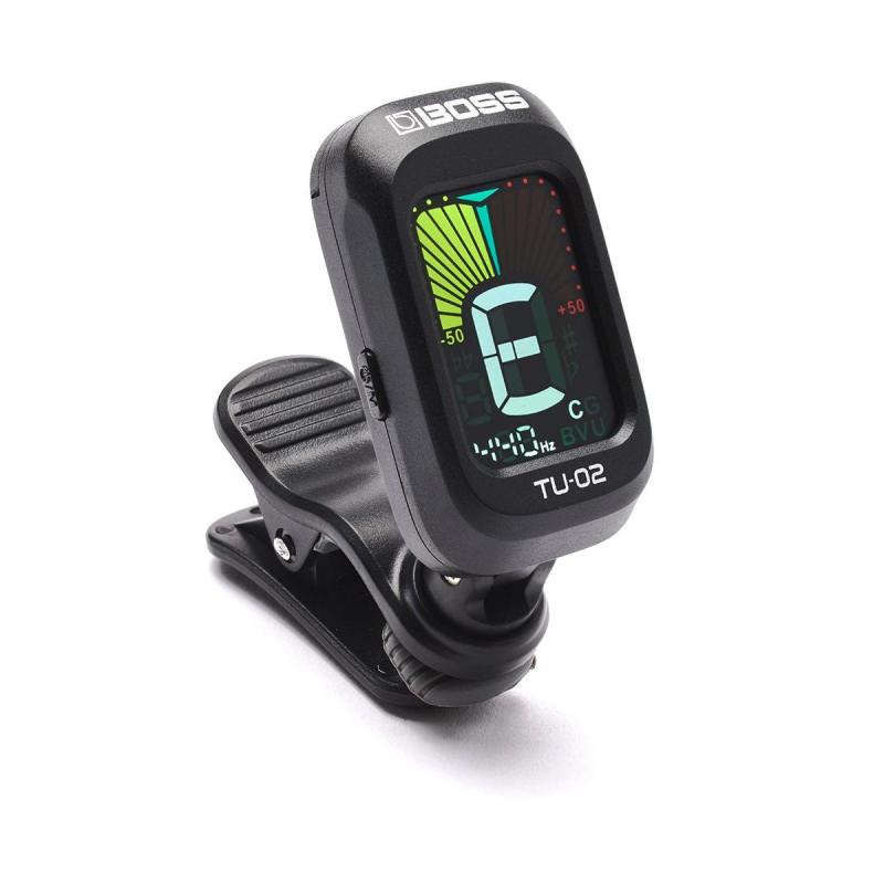 BOSS TU-02 представляет собой портативный хроматический тюнер, представленный в виде устройства, закрепляемого на голову грифа музыкального инструмента. Таким образом, можно обойтись без отдельной «примочки» в педалборде и иметь возможность быстро и точно настроить гитару как в домашних условиях, так и в репетиционных или концертных.