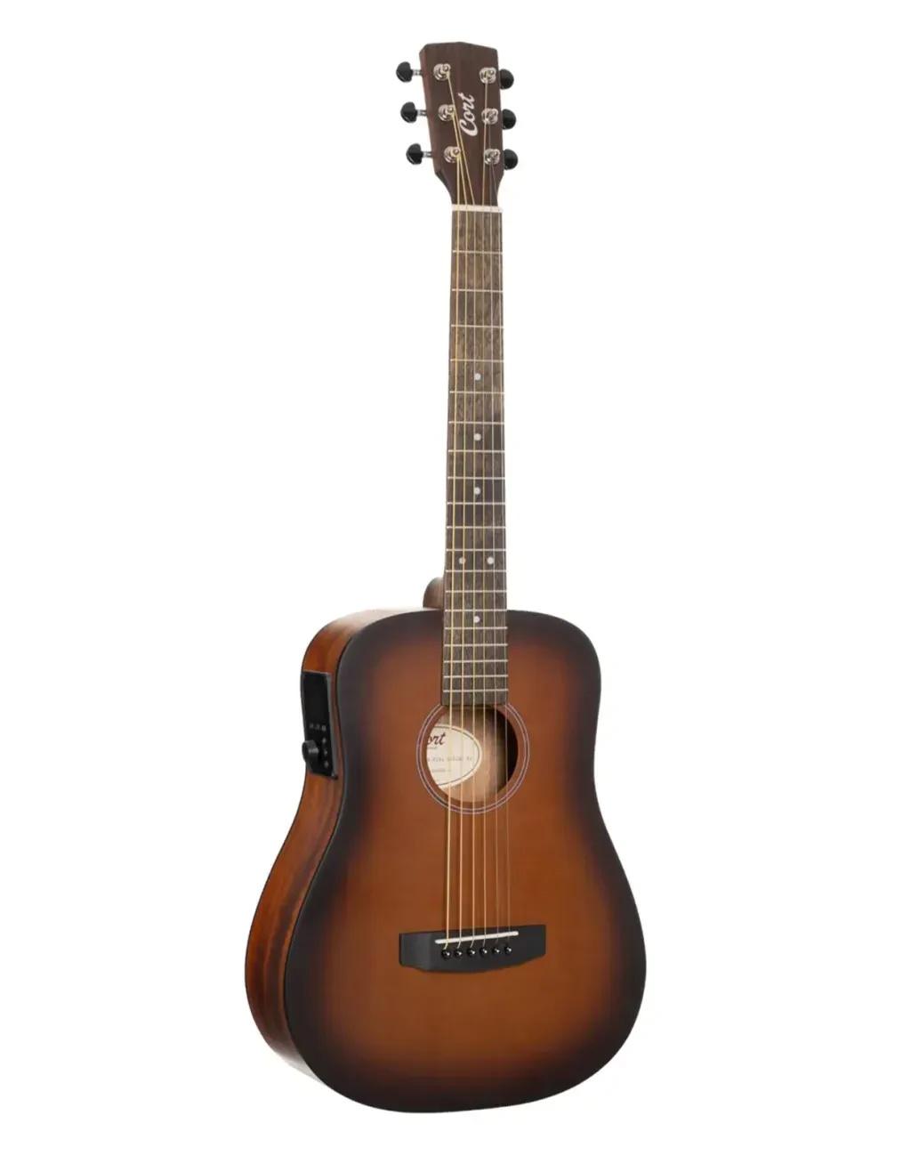 Компактные электроакустические гитары Cort Earth GO производят революцию в игре благодаря корпусу типа "дредноут" размером 3/4 и, что особенно важно, инновационной электронике HyVibe H2.