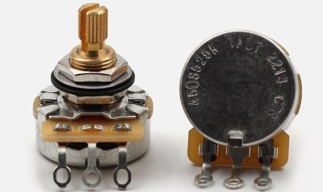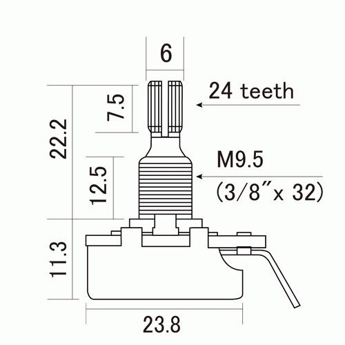 Внимание! Эти потенциометры требуют отверстий 9,52 мм в диаметре (американский дюймовый стандарт), на японских/корейских/китайских гитарах потребуется доработка (увеличение) отверстий под потенциометры в корпусе/панели гитары. Высота резбовой части 9,52 мм.