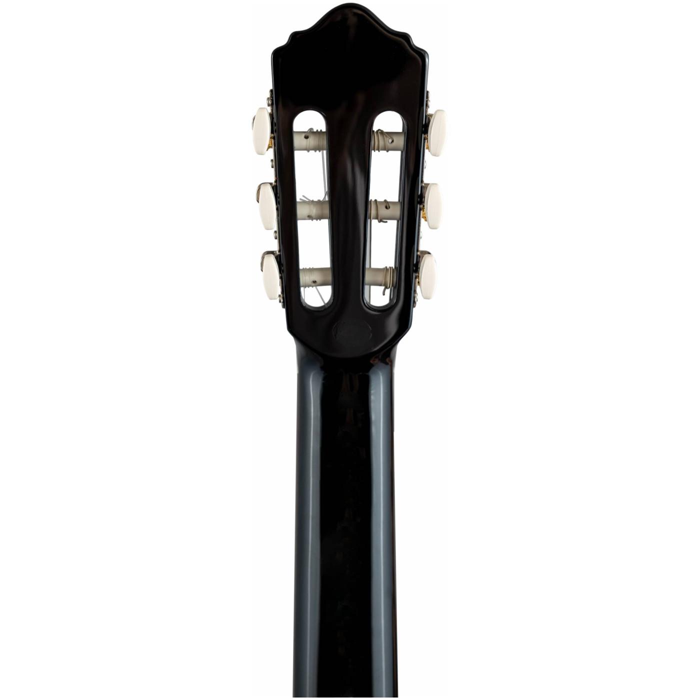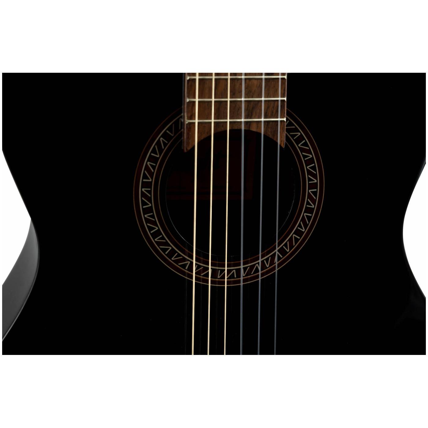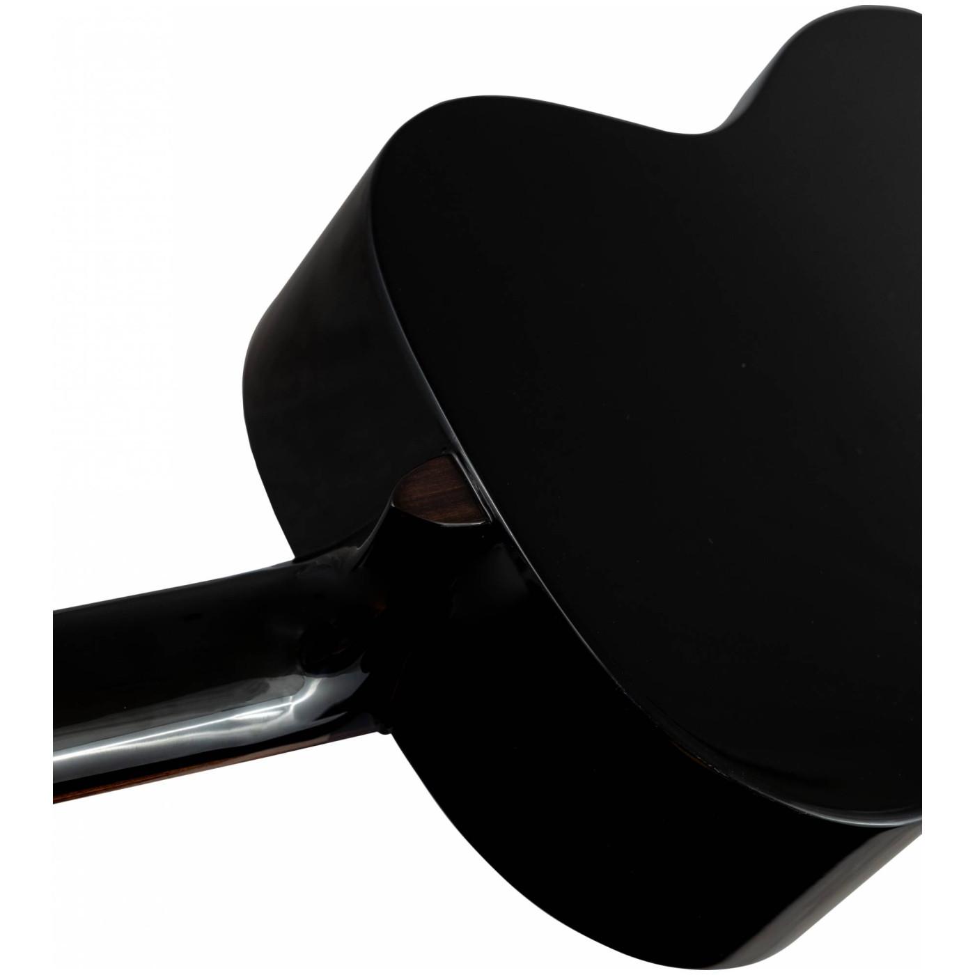 Оригинальный графический рисунок на розетке сразу привлекает внимание и отлично гармонирует с подставкой и окантовкой на нижней и верхней деках инструмента. FLIGHT C-120 выполнен в черном цвете с классической глянцевой отделкой.