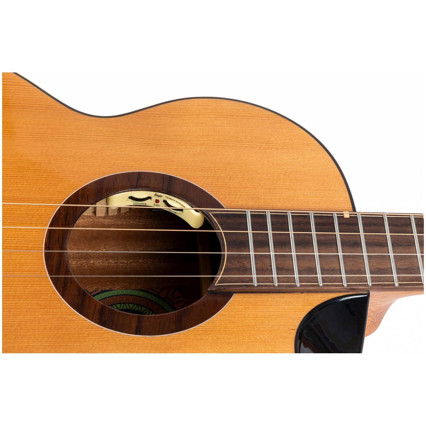 Голова грифа выполнена в глянцевом черном цвете с логотипом Flight, которая сочетается с глянцево-черным вырезом и окантовкой инструмента. В результате получается одновременно смелый и стильный образ.