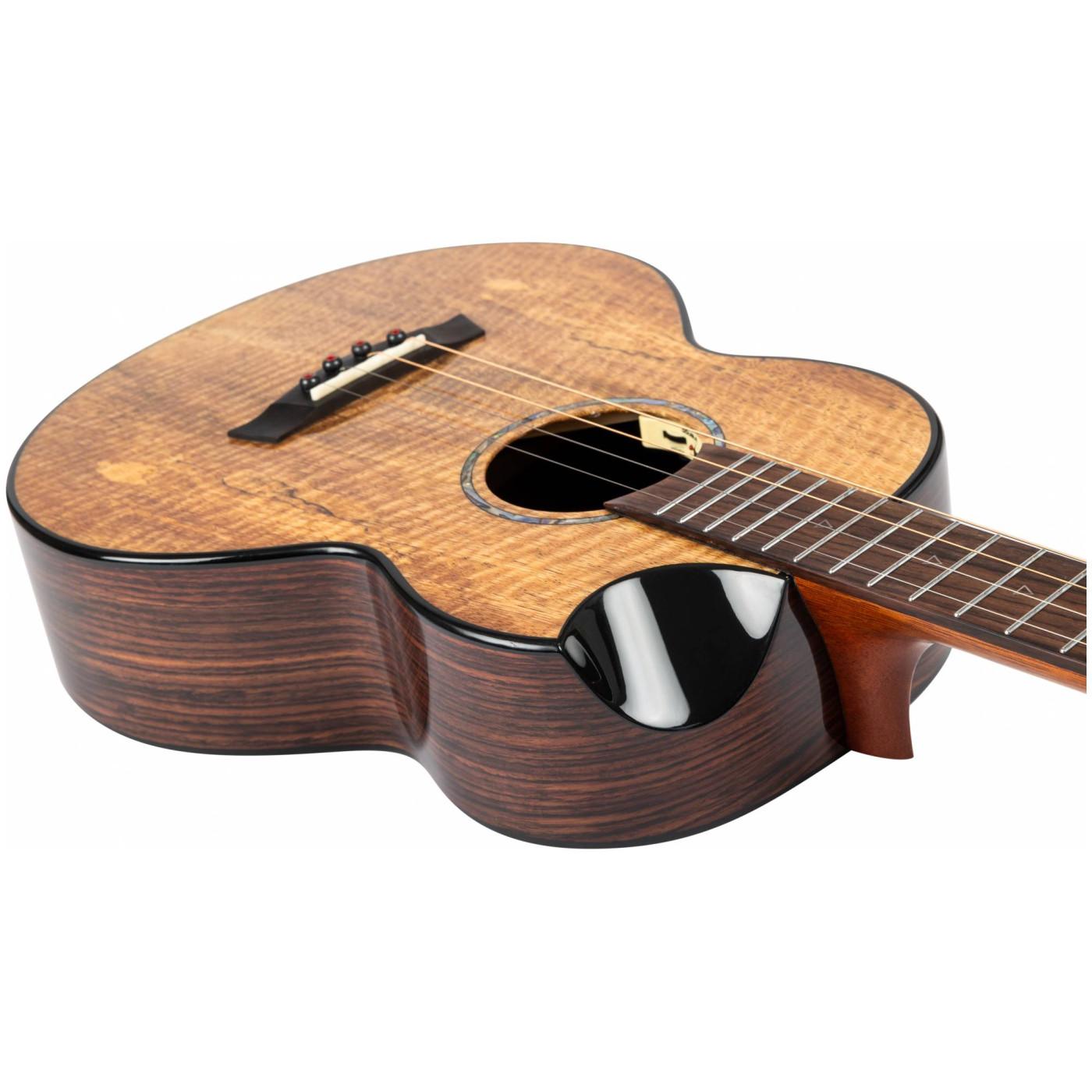 Maia можно рассматривать как небольшую теноровую гитару, но ее настройка стандартна для укулеле баритона - DGBE, или чикагская настройка для теноровой гитары. Благодаря своим стальным струнам и акустическому корпусу, Maia обладает ярким и динамичным звучанием, отличным от любой другой укулеле Flight. Пожалуй, это самая громкая укулеле! А активный звукосниматель Double C1U позволит вам усилить это звучание!