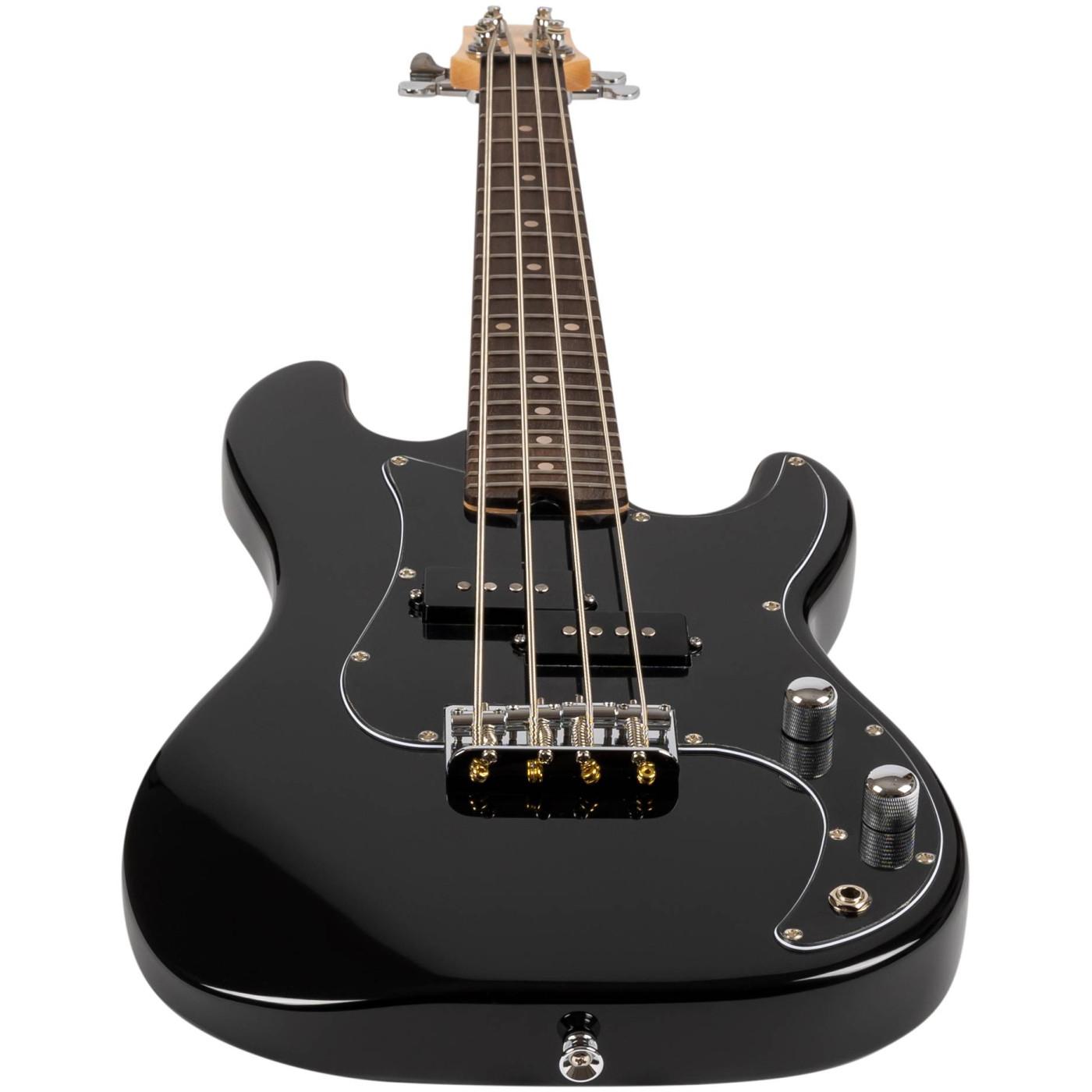 FLIGHT Mini Bass Lite BK — миниатюрная, но мощная бас-гитара, в черном цвете, которая идеально подходит для гастролирующих музыкантов. Несмотря на компактный размер (мензура 23" / 595 мм), инструмент сохраняет стандартный строй (EADG) и обладает насыщенным, чётким звучанием благодаря датчикам Alnico 5 и корпусу из тополя.