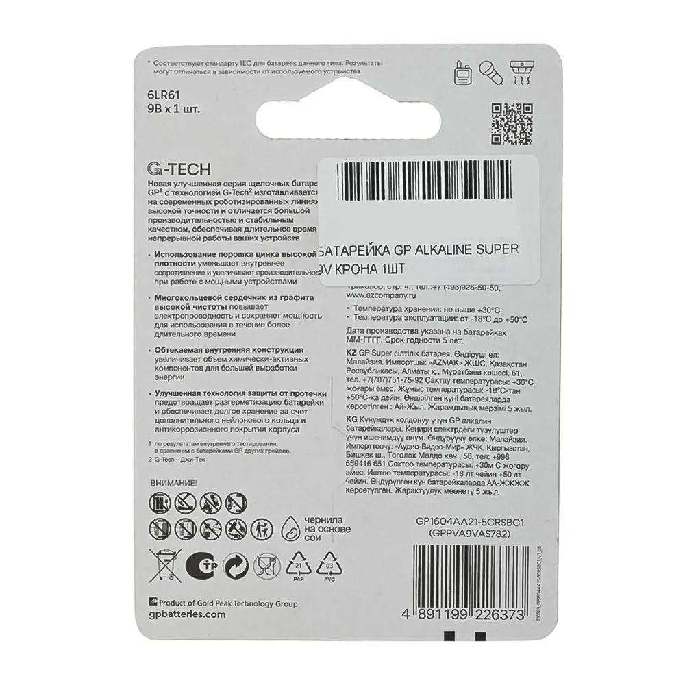 Ultra Alkaline G-Tech Элемент питания "крона", алкалиновый