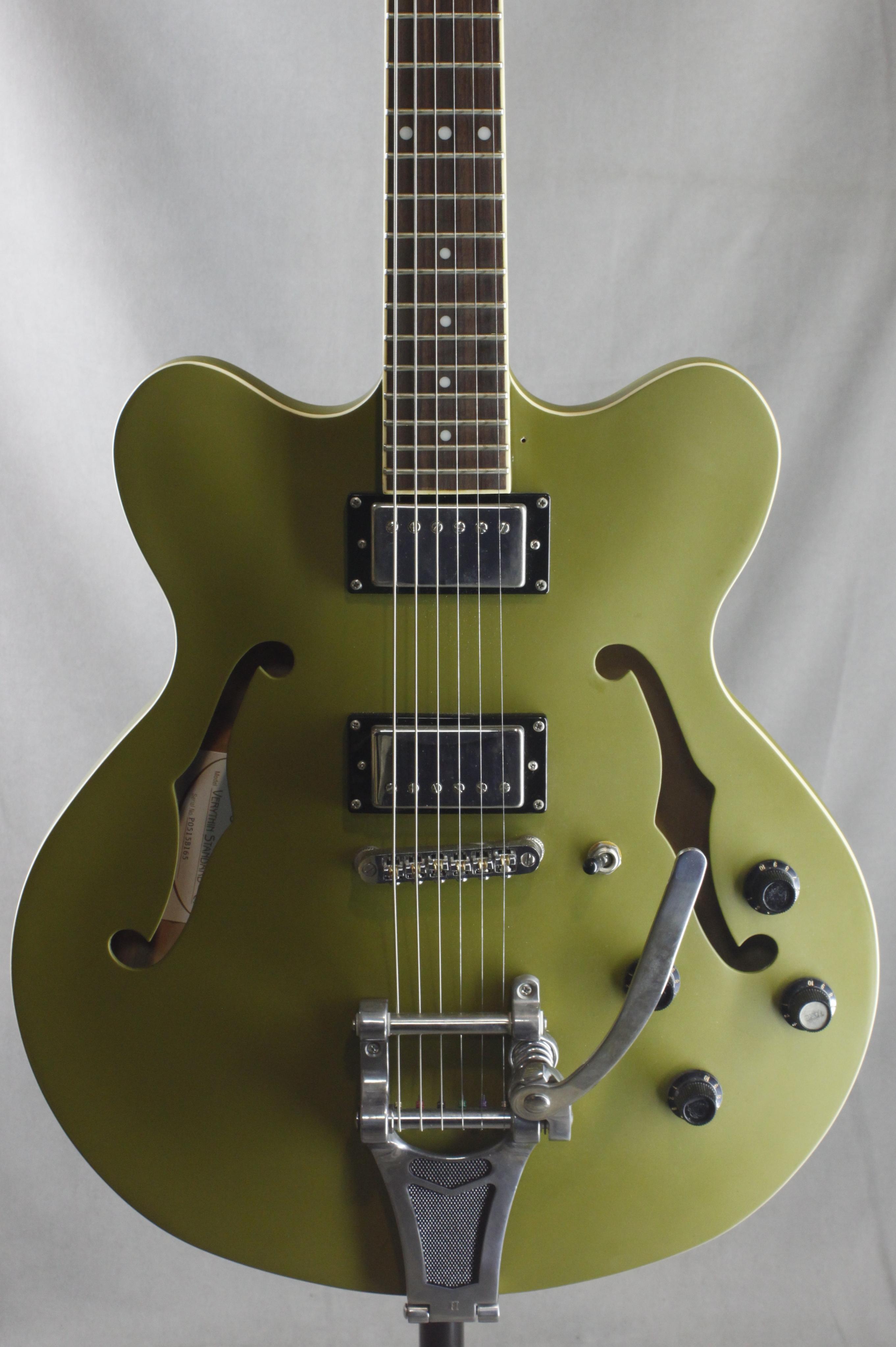 Лимитированная серия знаменитой гитары Höfner Verythin. Созданная на основе оригинальной классической формы корпуса гитары 1960 года с глубиной всего 1,25 дюйма, Hofner Verythin была чрезвычайно популярна среди групп в эпоху бит-бума 1960-х годов. Эта специальная серия выполнена в матовом оливково-зеленом цвете, оснащена настоящим тремоло Bigsby. Hofner Verythin CT не только передает уникальное звучание 60-х, но и способна воспроизводить тона от глубокого, мощного блюза до пронзительного искаженного рока.