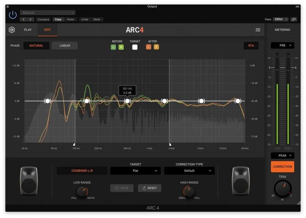 ARC 4 умеет эмулировать частотный и фазовый отклик большинства студийных мониторов на рынке, работая в тандеме с настройками ARC и обеспечивая наилучшее возможное звучание в любой обстановке. С этой функцией вы сможете быстро отслушать микс на нескольких мониторных системах, не вставая с кресла и не меняя калибровку в ARC. Функция виртуального мониторинга превратит ваши колонки в телевизор, автомобильные динамики или другие популярные студийные мониторы. Таким образом, вы сможете проверить, как ваша работа будет звучать на различных устройствах, чтобы обеспечить наилучшую передачу.