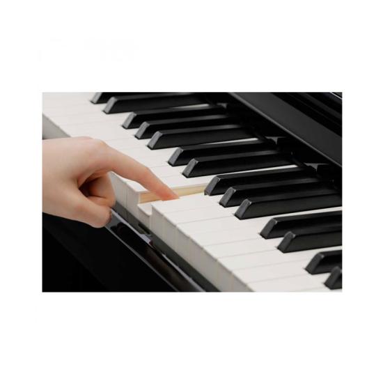 Все восемьдесят восемь черно-белых клавиш полностью изготовлены из длинных кусков дерева с тонко текстурированными поверхностями цвета слоновой кости и черного дерева, которые впитывают влагу и облегчают контроль. Каждая деревянная клавиша плавно поворачивается на балансировочном штифте – концы поднимаются и опускаются, повторяя знакомое движение "качелей" при игре на акустическом пианино. При нажатии задняя часть клавиши поднимается, приводя в действие утяжеленный молоток для удара по реле давления. Затем измеряется величина усилия, приложенного к этому переключателю, и соответствующая нота воспроизводится с аутентичным тональным характером и громкостью.