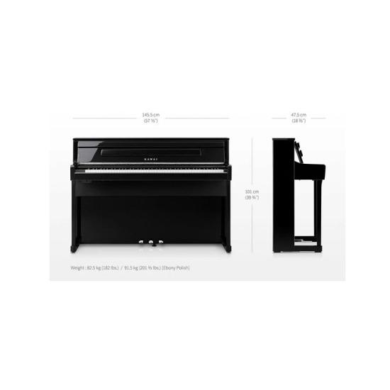 Сидя за Kawai CA901, музыкант создает впечатление, что он сидит перед маленьким вертикальным пианино Kawai.