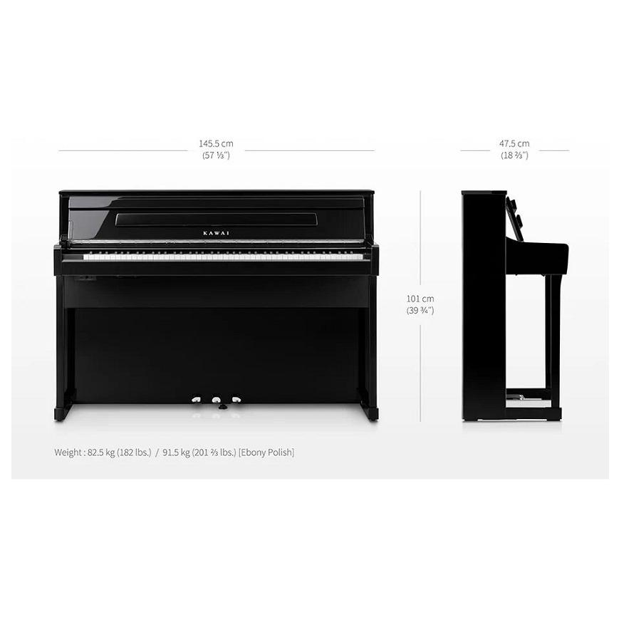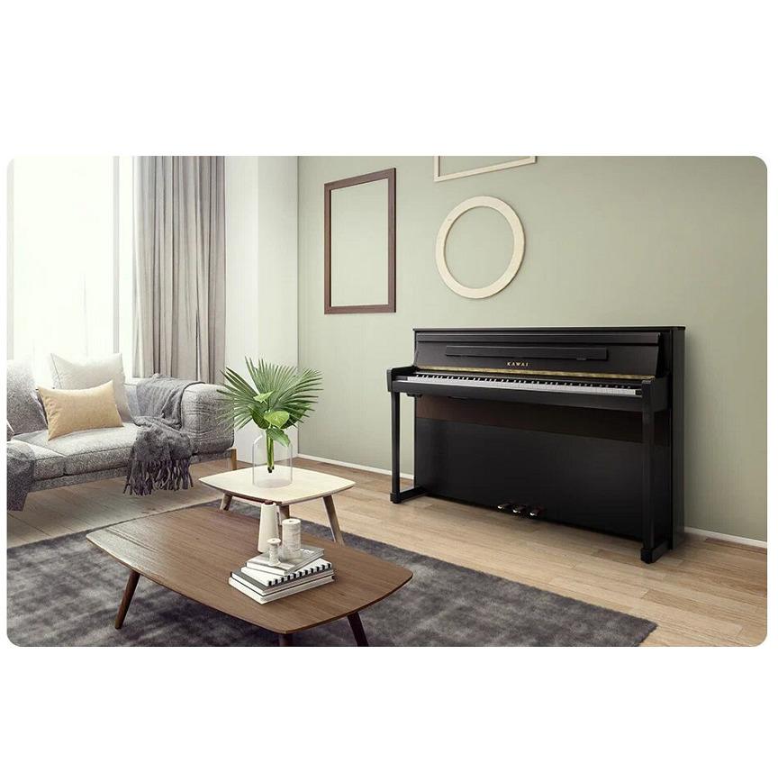 Сидя за Kawai CA901, музыкант создает впечатление, что он сидит перед маленьким вертикальным пианино Kawai.