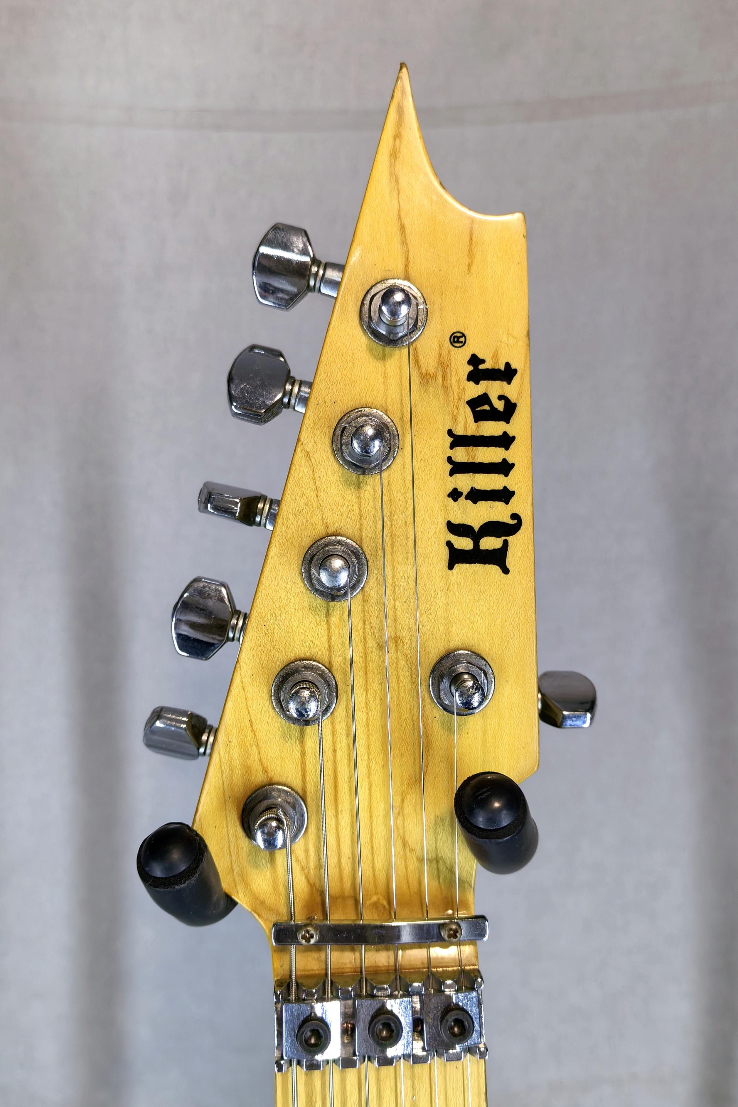 Редкий и коллекционный инструмент сделаный в конце 80, начале 90 в Японии. В отличие от обычных "пиратов" KGP-10, данная модель носит название KGP-12. Имеет лимитированный цвет Sparkling Purple, лучшее качество материалов и расширеные опции электроники. Бренд Killer, был основан в 1987 году, специально для создания инструментов для гитариста группы Loudness Акиры Токасаки. Производством и дистрибуцией занималась компания ESP. Отличительной особенностью инструментов, является уникальный VU профиль грифа, и технология Deep Insert, для усиленного крепления грифа. Гитара высочайшего качества, и обладает потрясающим звуком. Также, при всей агрессивной форме корпуса, инструмент крайне удобен, в любом положении (сидя, стоя), хоть в позе креветки.