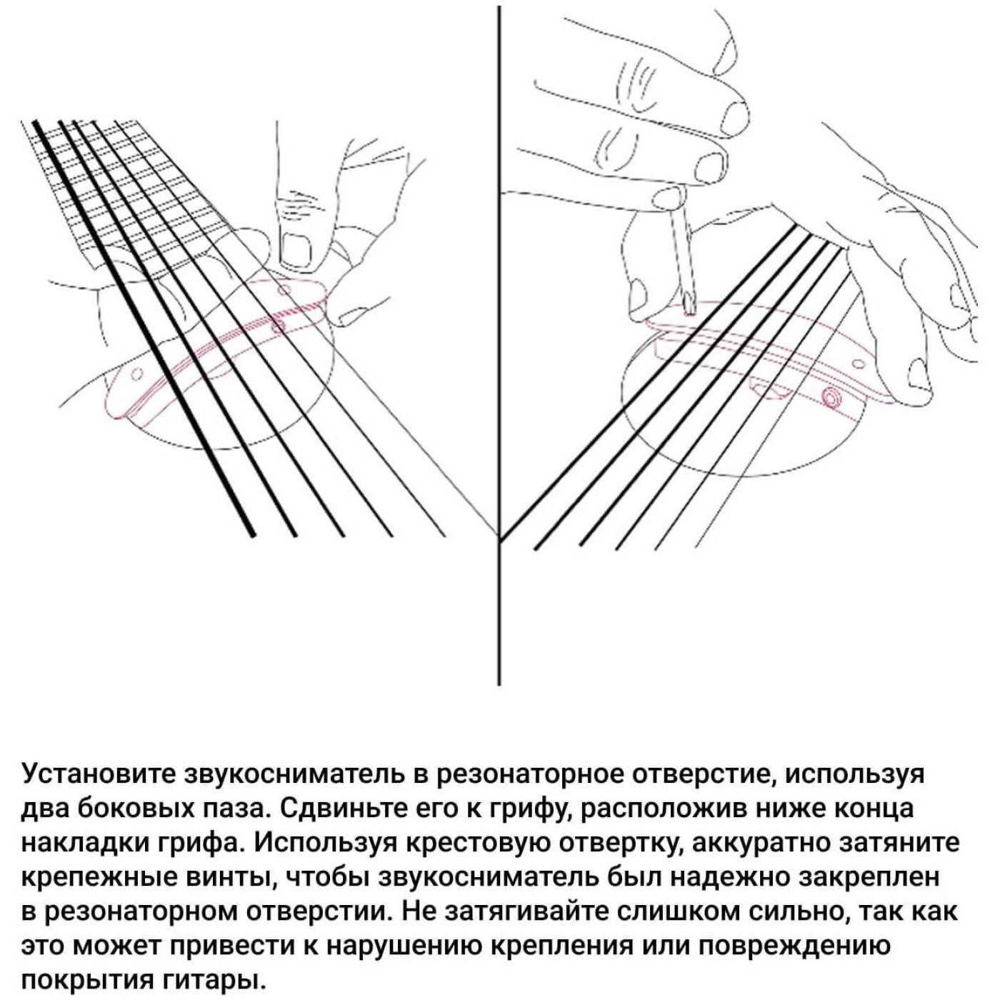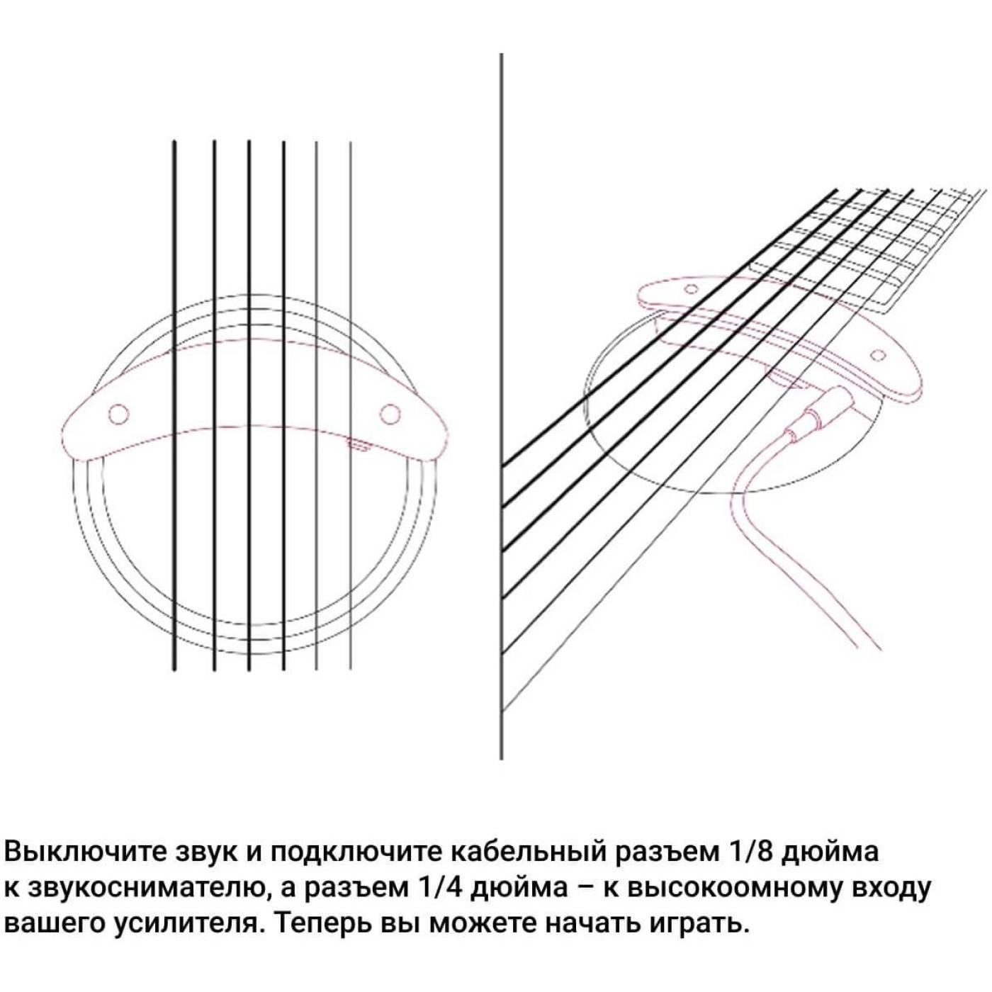 Высококачественный корпус из красного дерева и легкий дизайн обеспечивают максимальную чувствительность и прочность звукоснимателя. HP-1A легко устанавливается под струнами, не требуя никаких модификаций и не влияя на акустические характеристики гитары. Встроенный предусилитель уменьшает шум и устраняет заземление струн. Предусилитель также повышает тембр и обеспечивает чистое звучание гитары со стальными струнами. Для работы звукоснимателя требуются 2 батарейки CR2032.