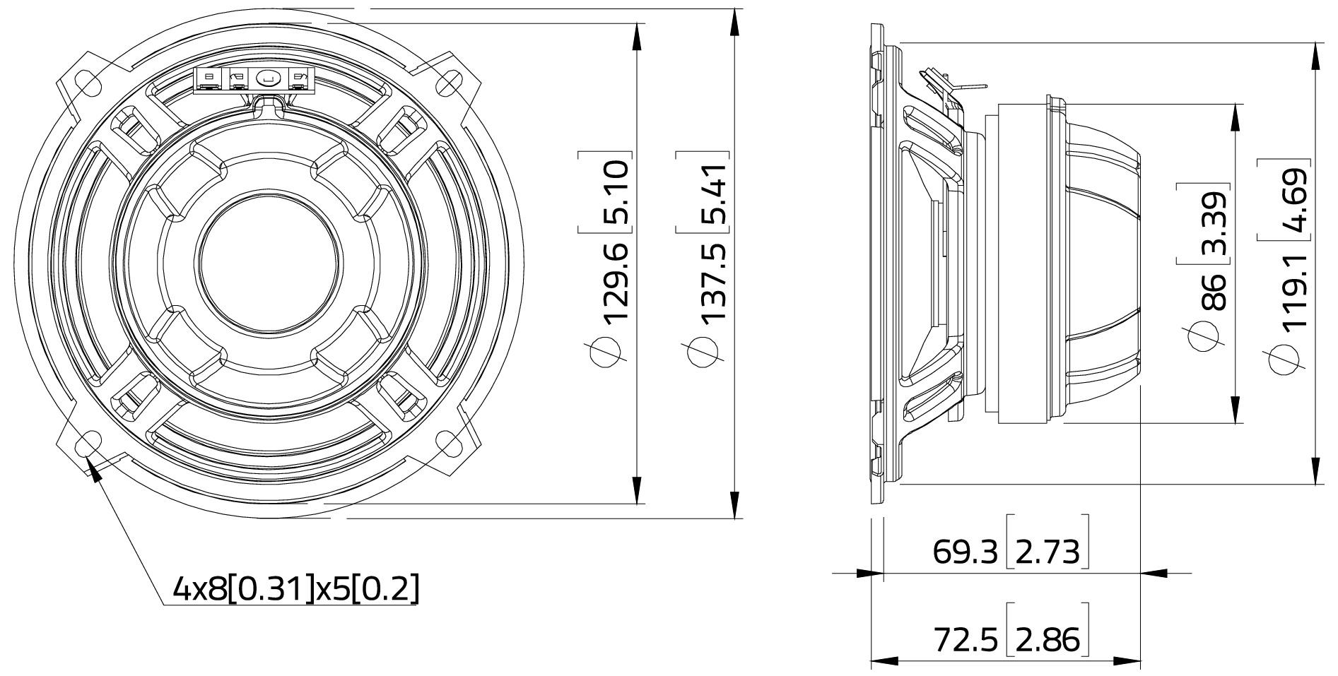 Высота намотки звуковой катушки: 8,5 мм (0,33").