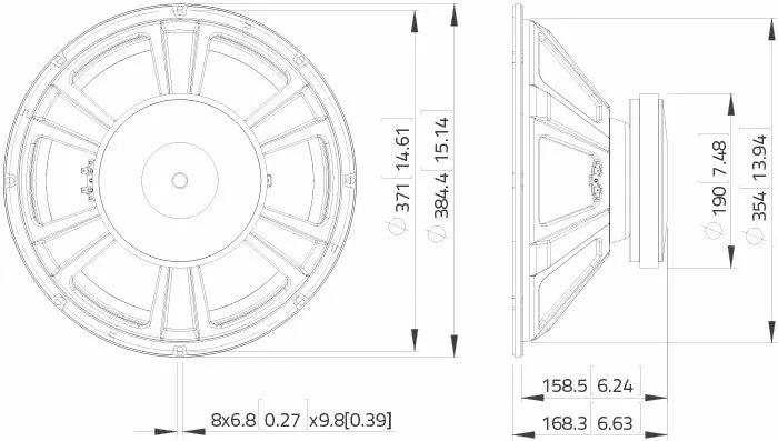 Высота намотки звуковой катушки: 18,6 мм (0,73").