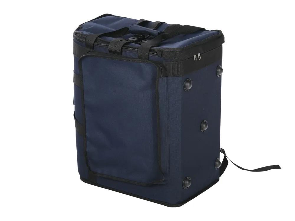• Открывается верхняя грань, объёмный и плоский наружные карманы, можно носить как рюкзак, 2 жестких грани с ножками, ручки в двух плоскостях.