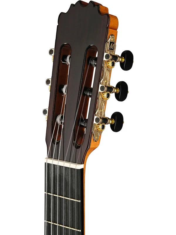 Инструмент продвинутого уровня с верхней декой из массива ели и задней декой из массива палисандра. Улучшенная система пружин и особый тонкий бридж обеспечивают глубокий резонанс.