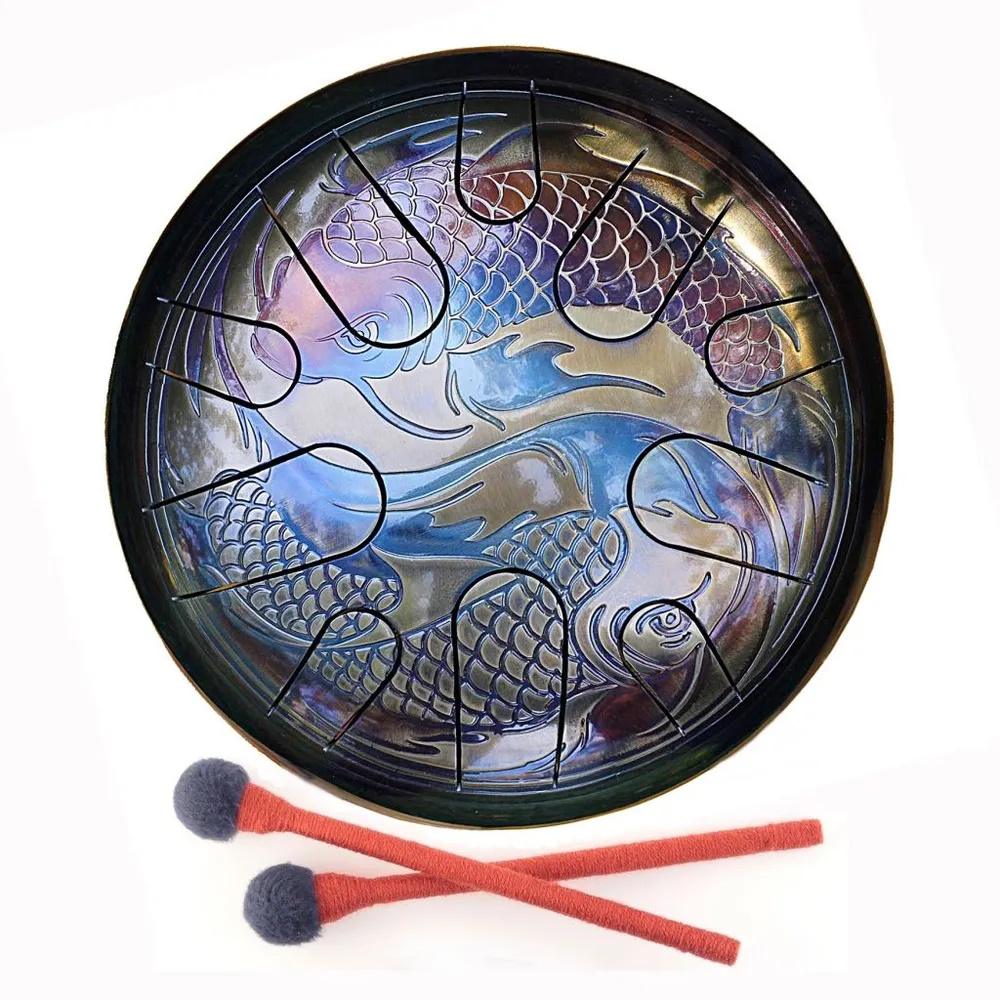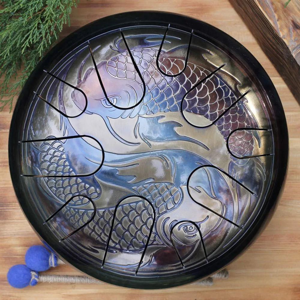 Глюкофоны мастерской Алатырь – это качественные стальные 10-ти язычковые барабаны диаметром 30см, выполненные из высококачественной, музыкальной стали.