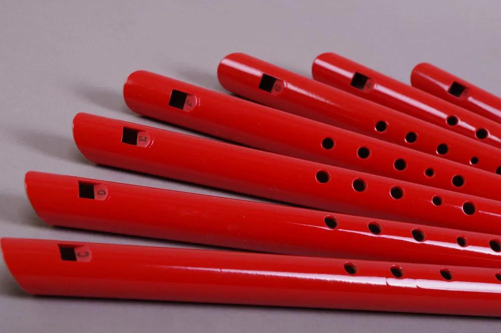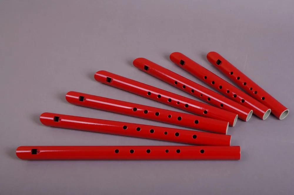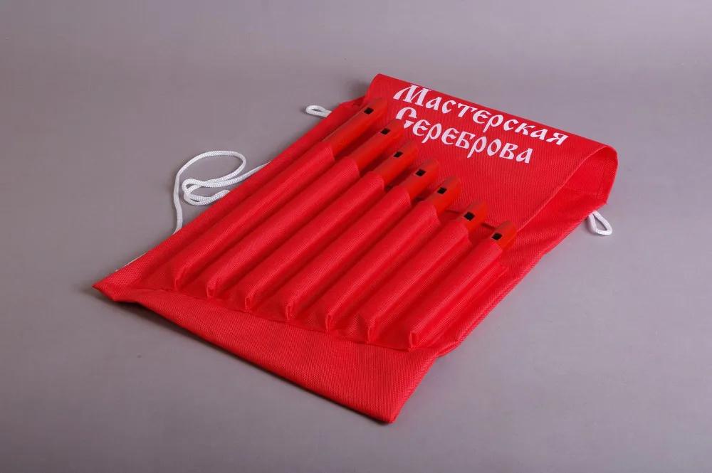 С наружной стороны свирели просверлено 6 отверстий согласно звучащим нотам.