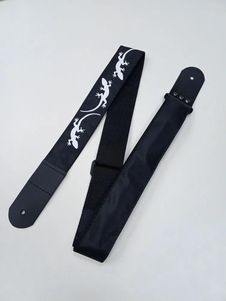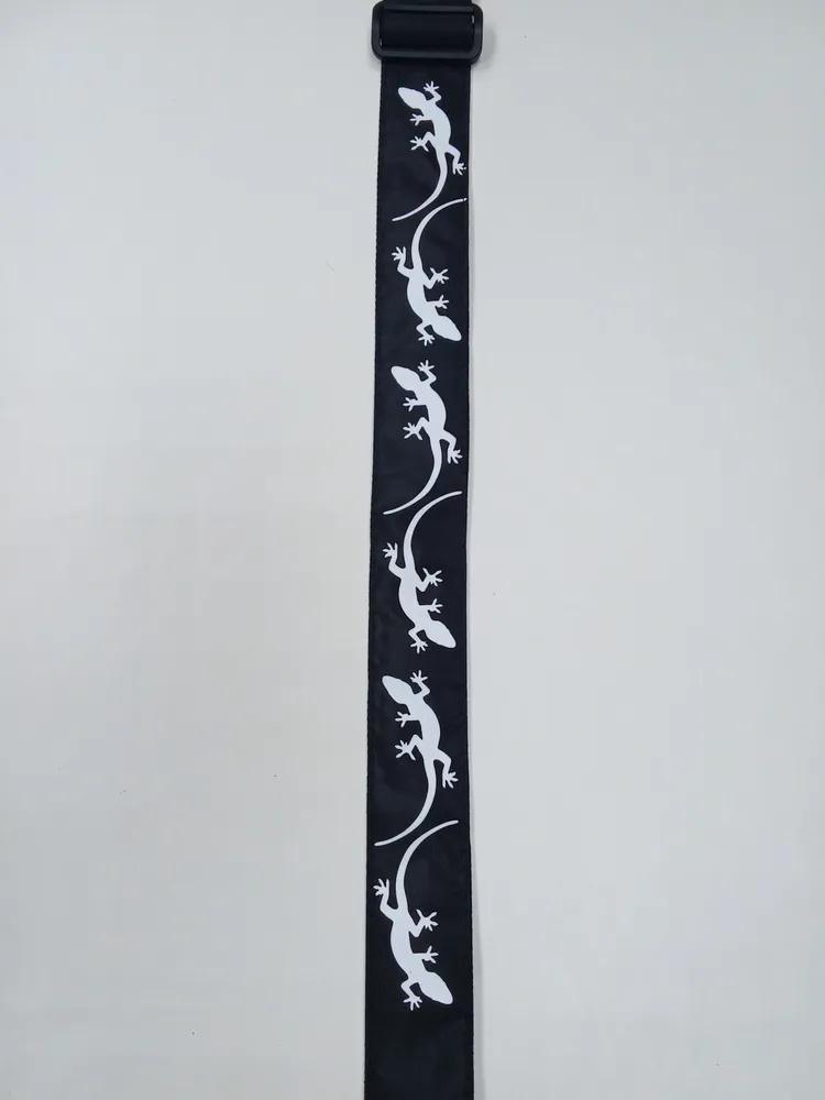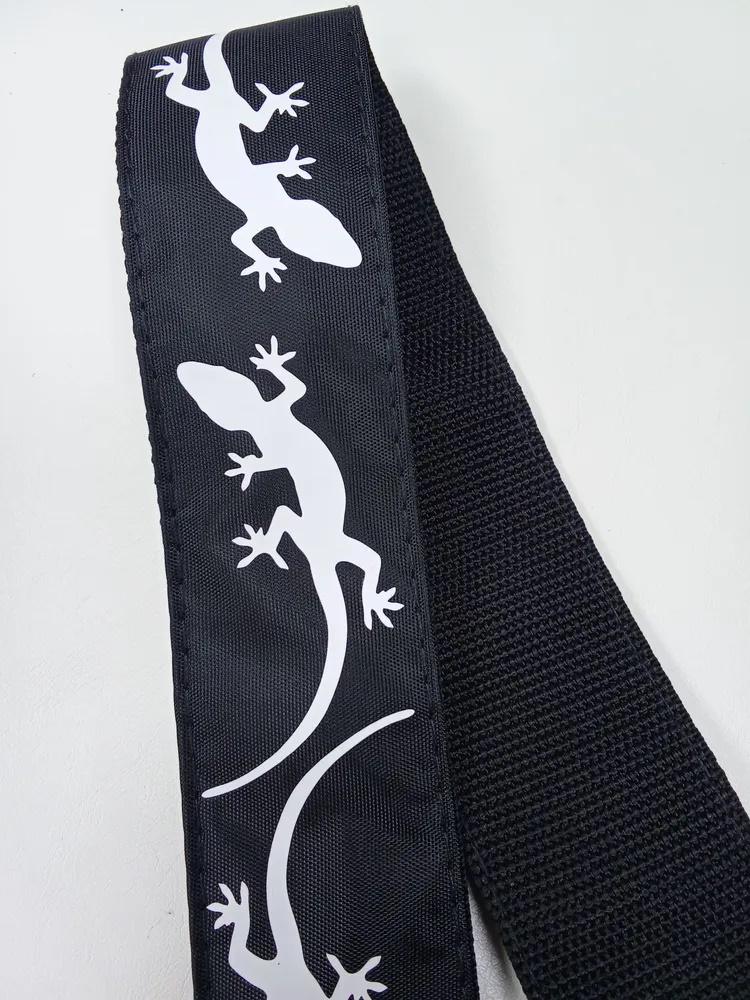 Ремень для гитары, черный, аппликация Ящерица