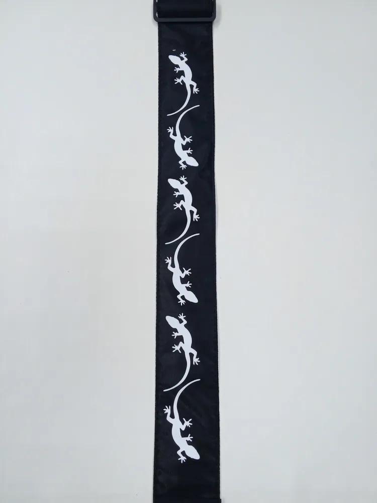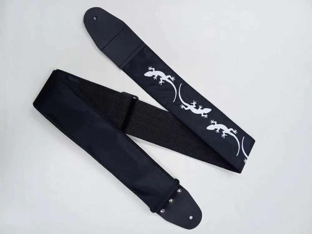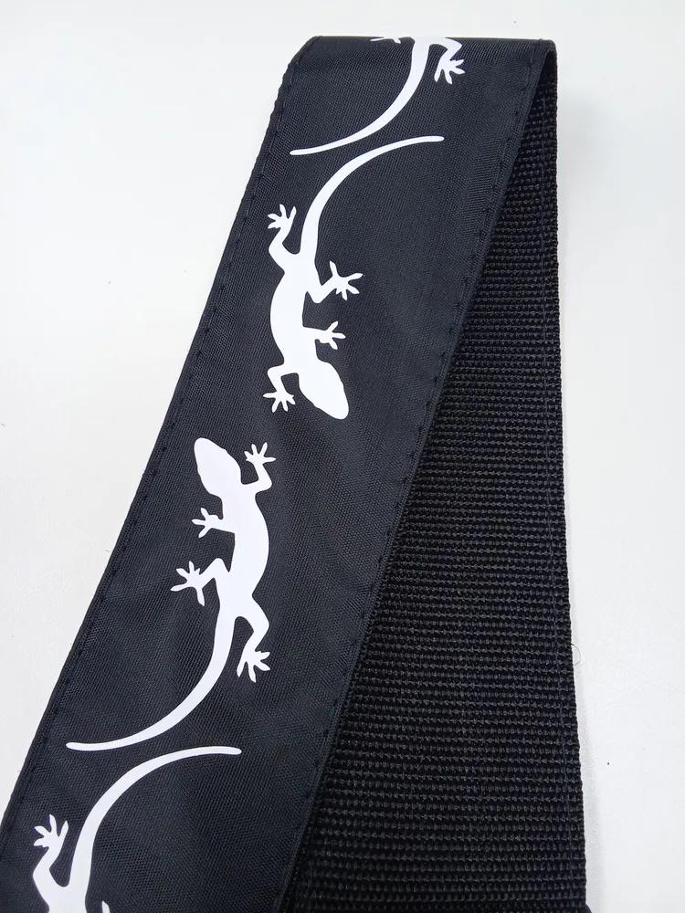 Ремень для гитары, черный, аппликация Ящерица