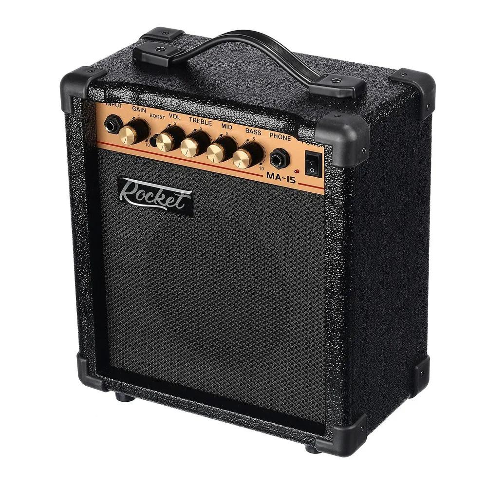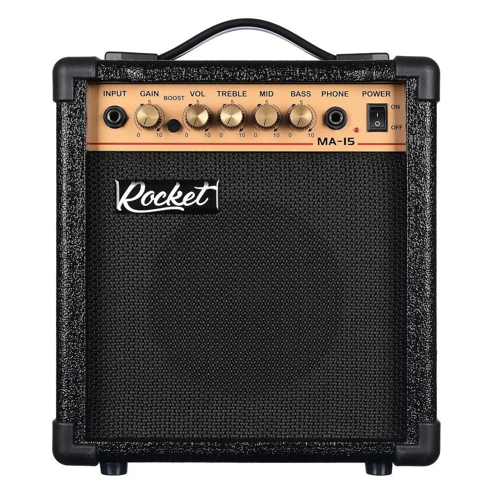 Гитарный комбоусилитель ROCKET MA-15 – гитарный комбоусилитель идеально подходящий для начинающих гитаристов, которые нуждаются в портативном комбо для домашних занятий. Несмотря на свою компактность, этот усилитель выдает 15 Вт мощности, что делает его достаточно громким для использования дома или на даче.