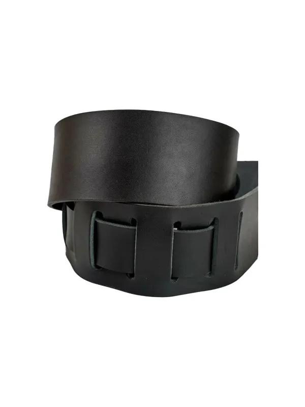 Состоит ремень из двух частей. Благодаря отверстиям в основной части, можно отрегулировать ремень под любой размер.