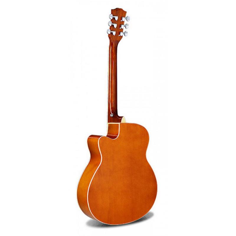 Полноразмерная акустическая гитара GA-H10 — идеальный вариант для начинающих гитаристов. Вырез на корпусе улучшает доступ к верхним позициям грифа. Деки и обечайка данной модели выполнены из древесины липы, за счет чего гитара обладает глубоким и насыщенным звучанием. За настройку и удержание строя отвечает комплект колков Roto-стиля с закрытой механикой. Несмотря на свой ценовой сегмент, гитара великолепно выглядит за счет красивого рисунка древесины и применения окантовки на всех элементах.
