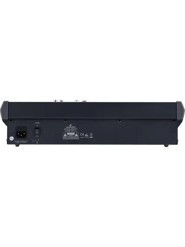 2 линейных стереоканала с балансными входами 1/4", с усилением и индикатором пика. 3-полосный эквалайзер, панорамирование/баланс, отключение звука, постфейдерное прослушивание, группа 1-2, основной левый-правый, 60-мм фейдер громкости.