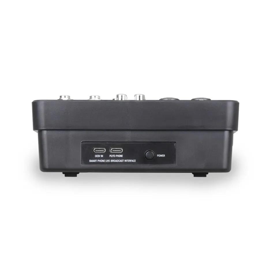 Микшерный пульт оснащен до микрофонными/линейными входами с фантомным питанием 48 В, выделенным входом 5 В для конденсаторных микрофонов, возможностью подключения по Bluetooth и высококачественным цифровым процессором эффектов с четырьмя настраиваемыми предустановками.